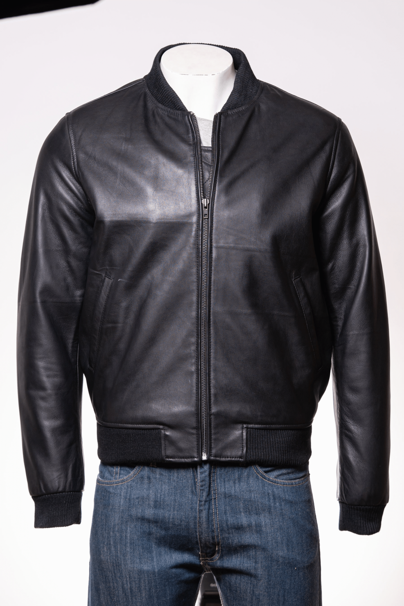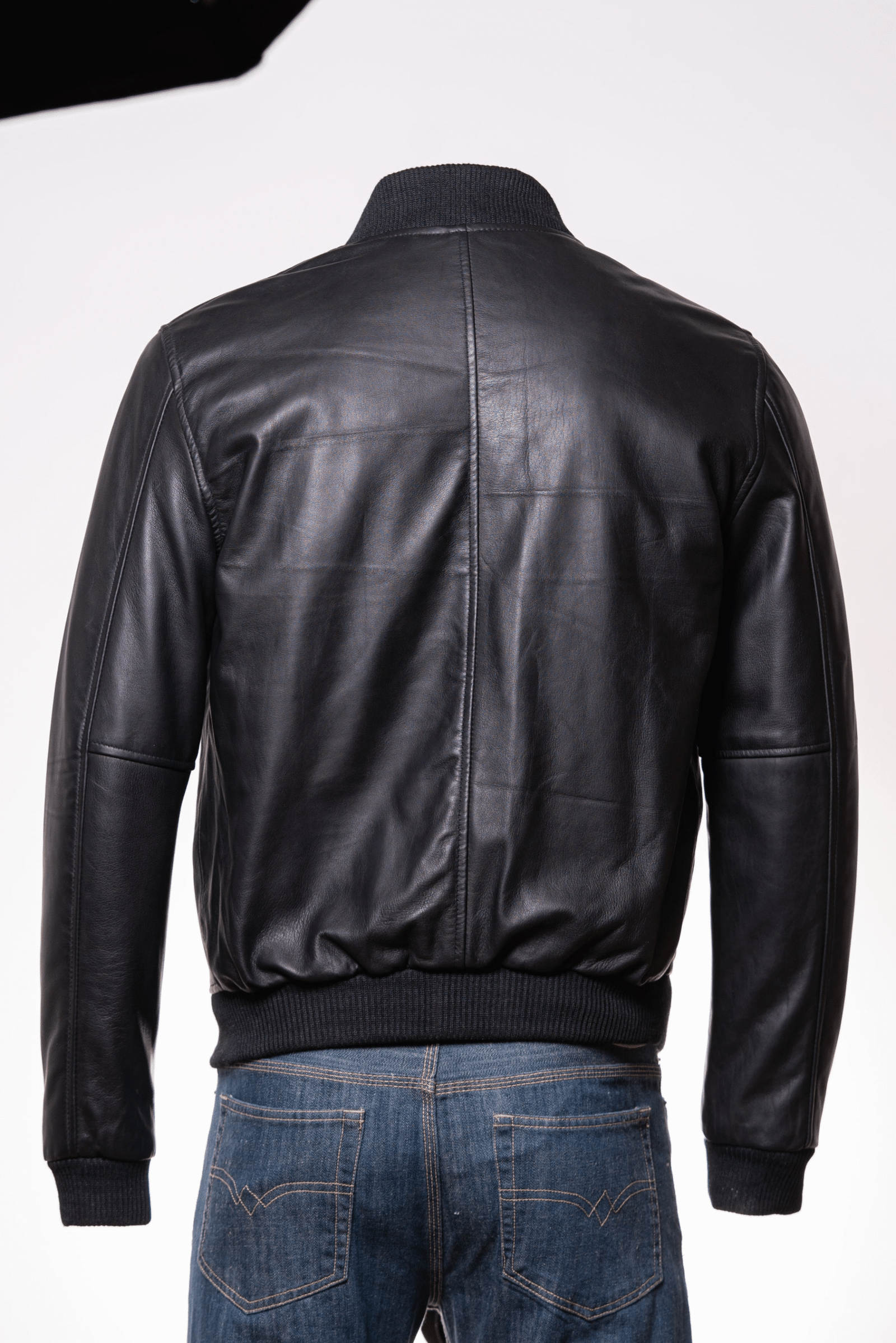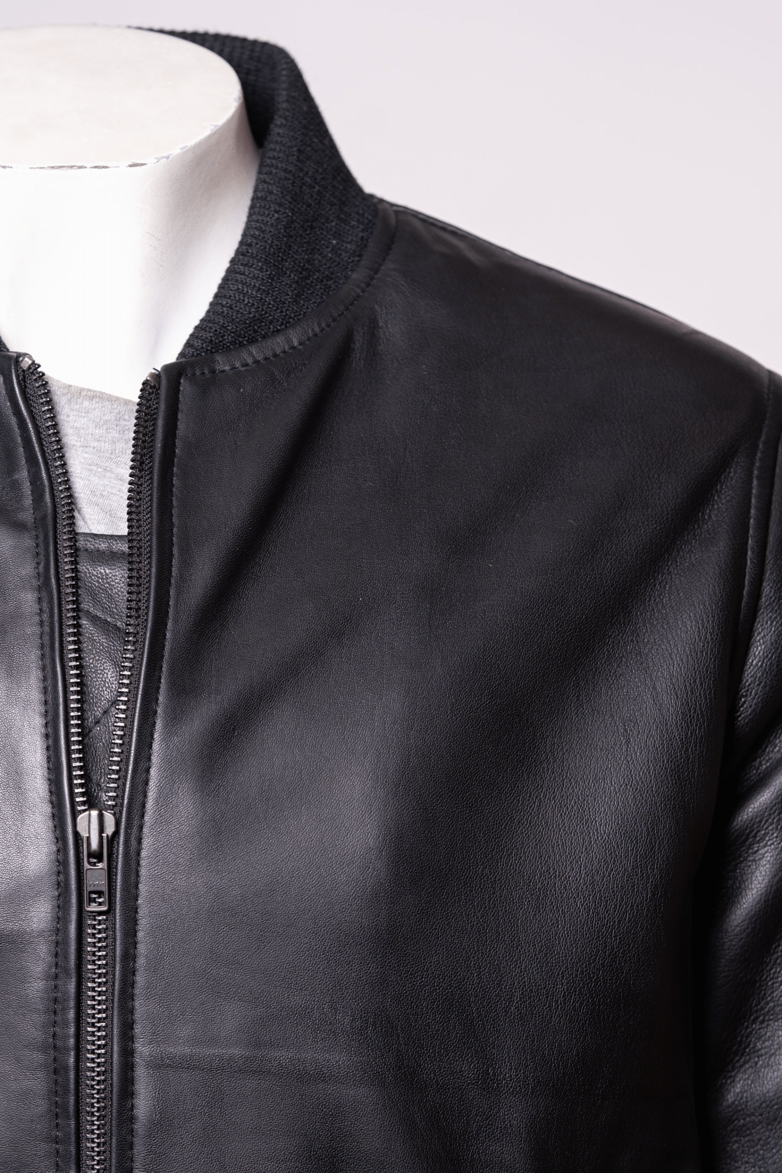 Buy it nowMen’s Black Rib-Knit Collar Leather Bomber Jacket